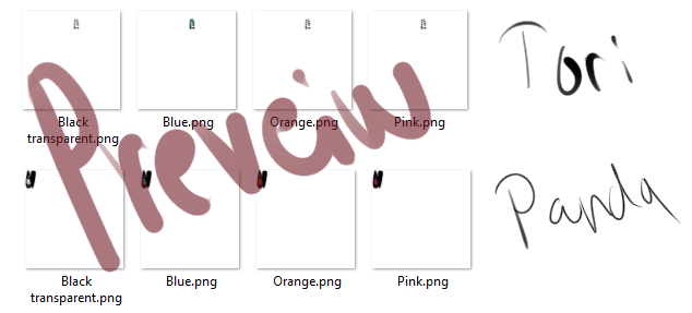 ♡ 4 swatches (black w transparency, orange, hot pink + teal)