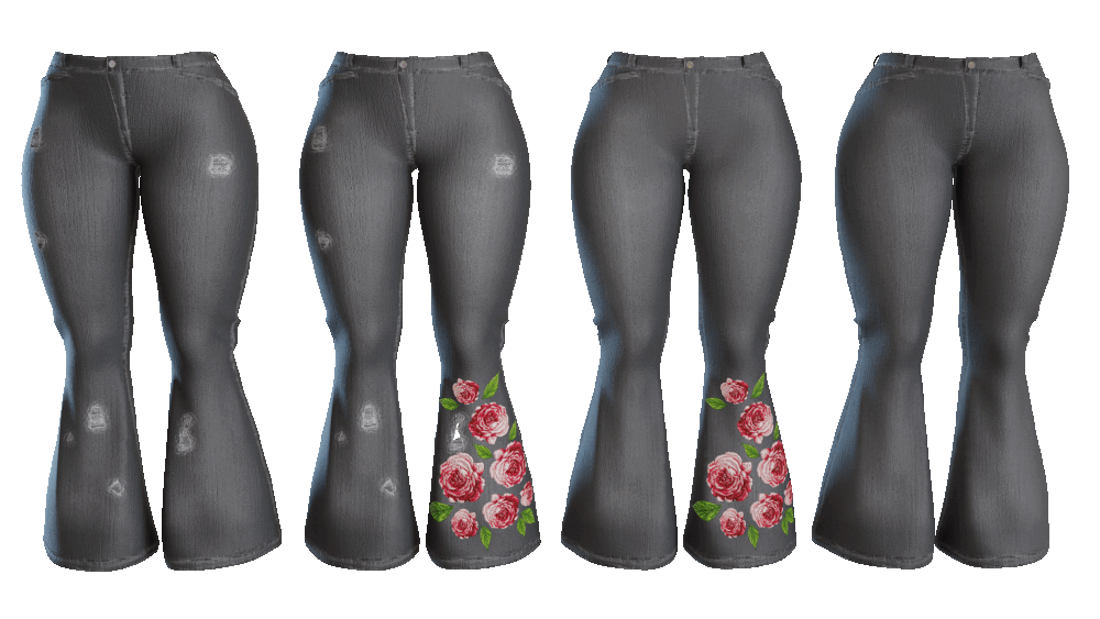 ♡ 22 swatches (5 colors w options for distressed/not distressed, floral embroidery on/off + 2 graffiti themed textures)