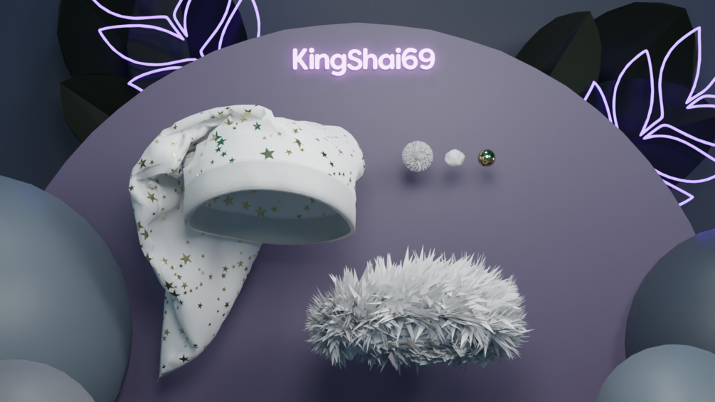 Comes w a mesh for optional fur rim, furry snowball at end, low-poly snowball at end + bell at end.