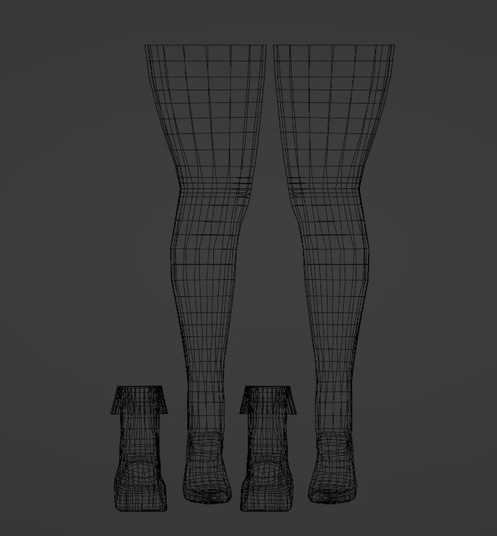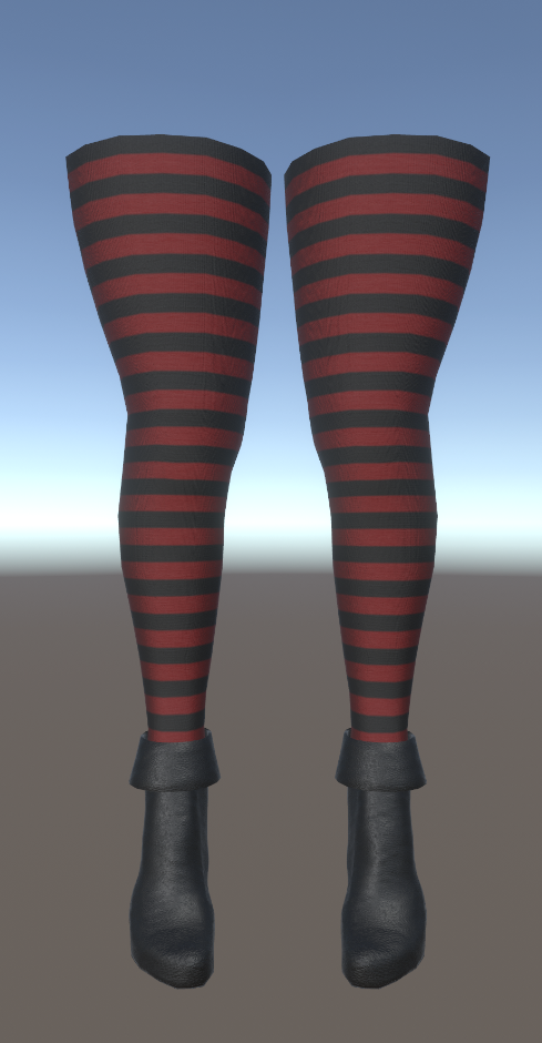 I highly recommend using shapekeys for the legs to avoid clipping around the knees. The socks have shapekeys for the shoes.