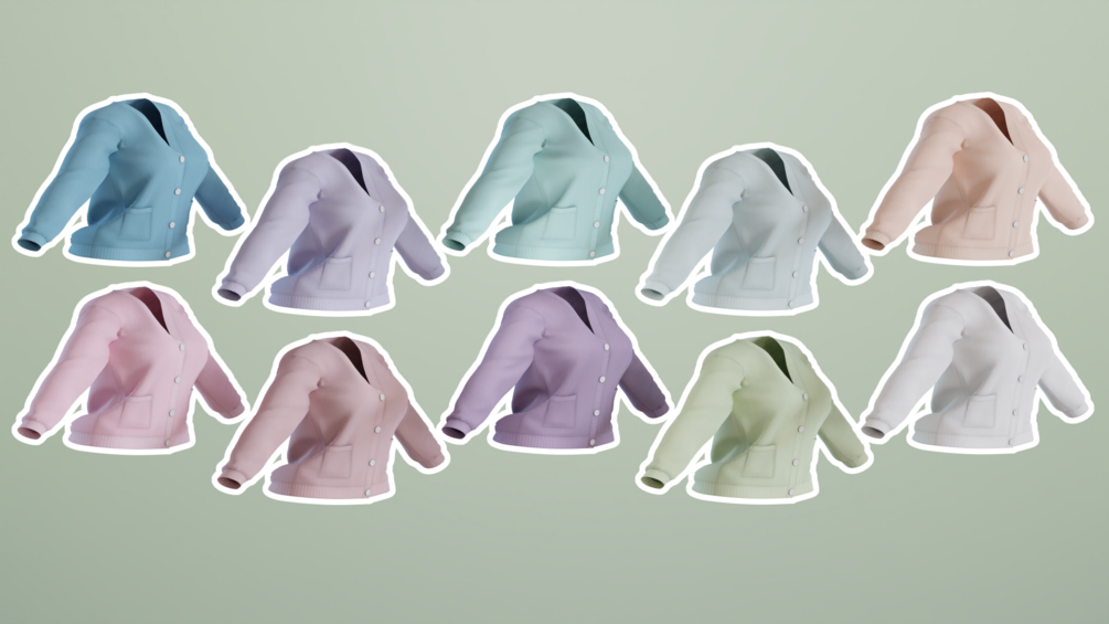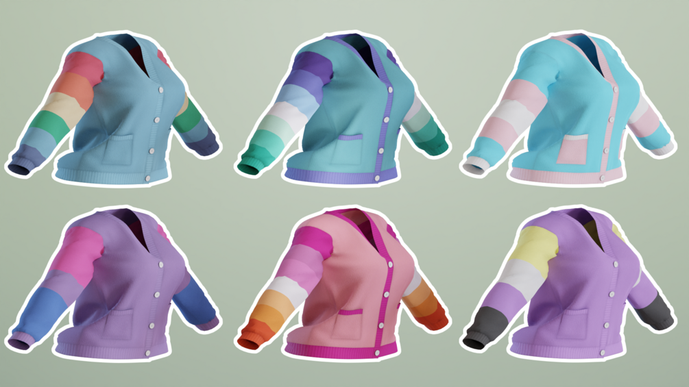 A cute simple cardigan as seen on Skulli's avi Sky. Comes w pastel swatches + a few pride themed.