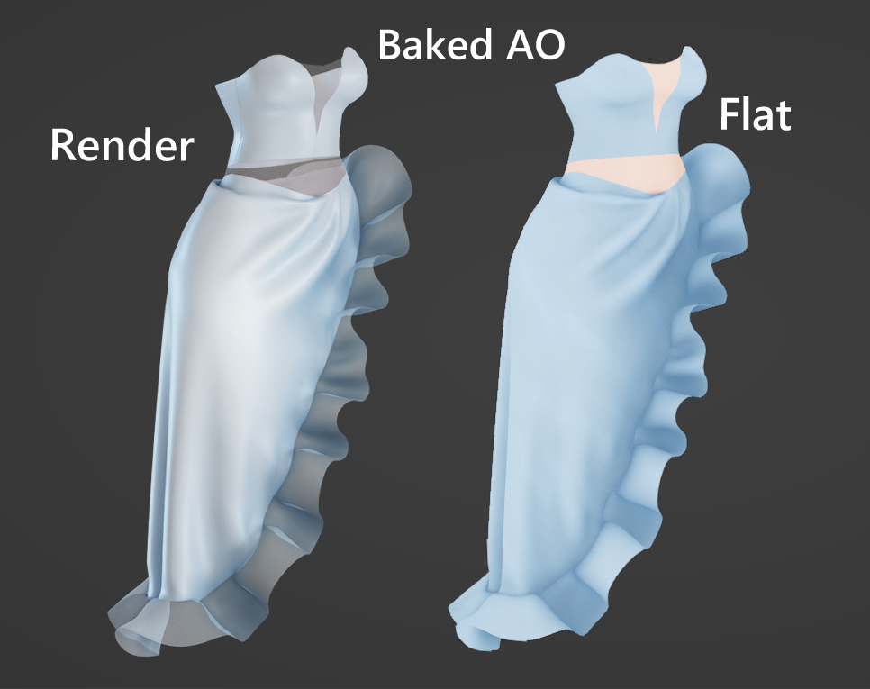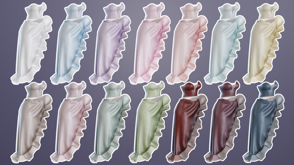 Base textures has build in opacity (no need for opacity map), but also comes with an option that uses alpha. Also has PSD files for each version to easily change color for the nude toned mesh parts or the dress itself. I recommend playing around w the different layer settings after how dark/light/vibrant etc u want the colors (multiply, color, soft light, overlay often works best)