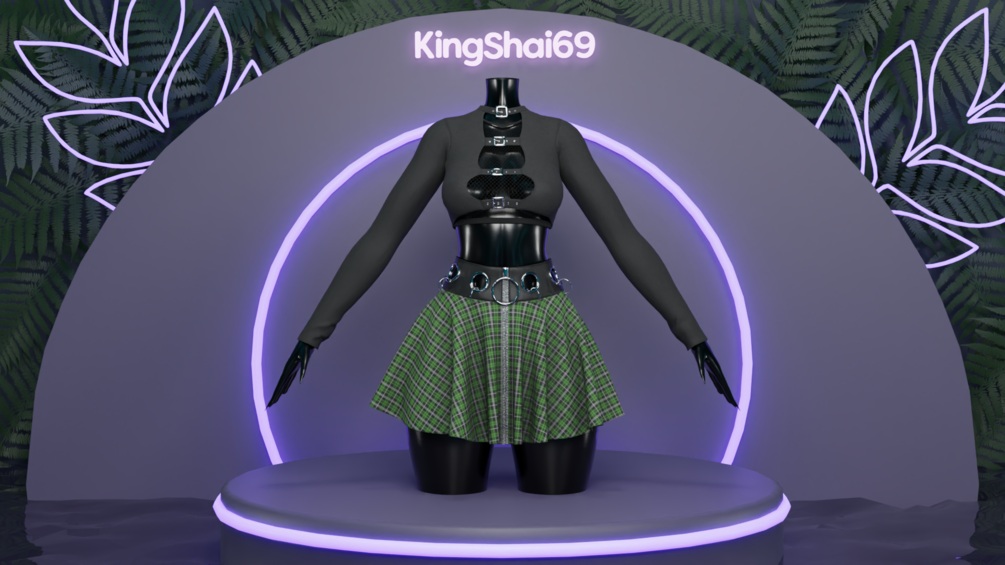 Buckle shirt, mesh shirt n plaid skirt as seen on Jessie ♡