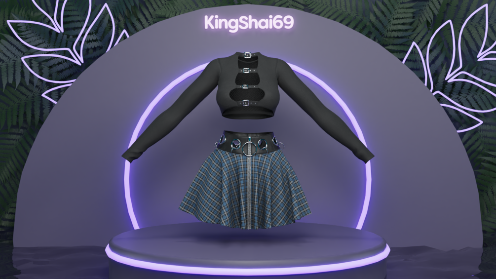 Buckle shirt, mesh shirt n plaid skirt as seen on Jessie ♡