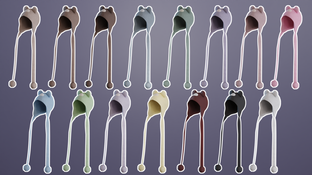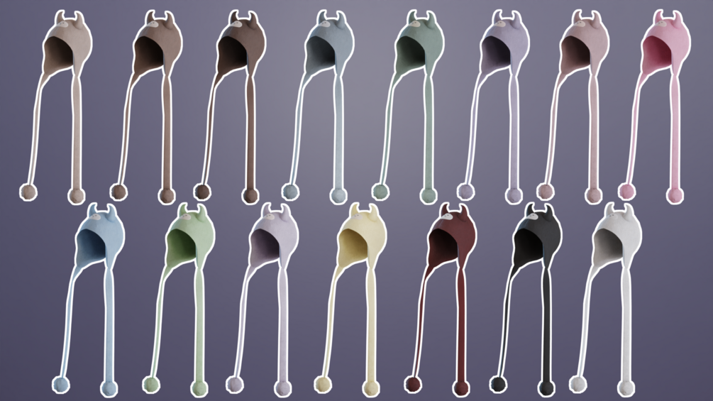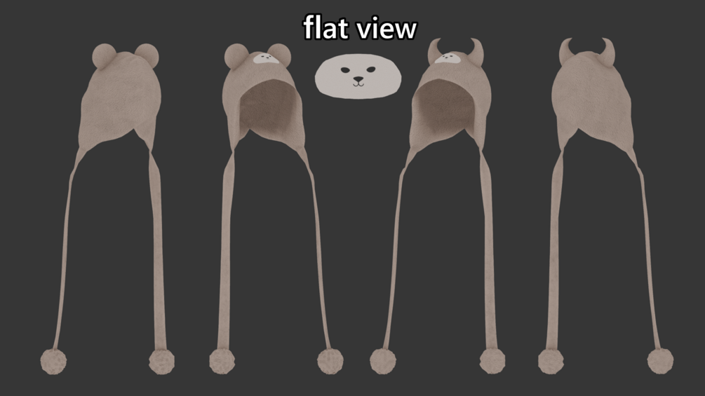 Shapekey to toggle face on/off. 2 different hats, 1 with round ears n 1 with lil devil horns